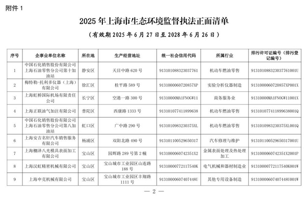 上海市生态环境局关于印发《2025年上海市生态环境监督执法正面清单》的通知沪环执法〔2025〕102号 各区生态环境局,自贸区管委会保税区管理局、临港新片区管委会,浦东新区综合执法局,市环境执法总队: 根据《上海市生态环境监督执法正面清单管理办法》有关要求,我局制定了《2025年上海市生态环境监督执法正面清单》,并明确了《上海市生态环...