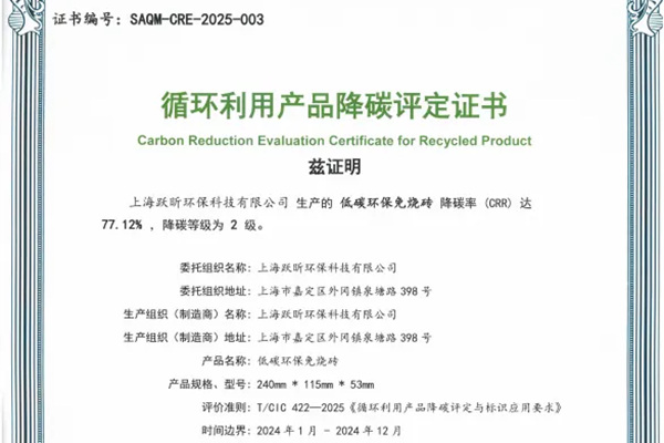 近日,上海环境下属环云环保科技有限公司与跃昕环保科技有限公司利用装修垃圾骨料生产的低碳环保免烧砖,正式获颁全国首批《循环利用产品降碳评定证书》。上海质量管理科学研究院魏玉剑院长向两家单位颁发了证书,上海城投集团运管总监陈明吉,上海环境总工程师邰俊现场见证。 低碳环保免烧砖采用装修垃圾预处理后形成的再生骨料直接制砖,免去传统砖块的烧制...