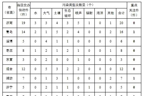 6月3日,中央第三生态环境保护督察组向山东省交办第七批信访件110件(重点关注件5件),其中来电58件,来信52件。本批信访件涉及济南市19件、青岛市14件、淄博市5件、枣庄市8件、东营市3件、烟台市12件、潍坊市7件、济宁市5件、泰安市7件、威海市3件、日照市8件、临沂市11件、德州市1件、聊城市1件、滨州市3件、菏泽市3件。当日,...