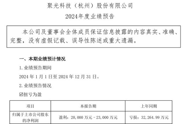2025年01月22日,聚光科技(杭州)股份有限公司发布《2024年度业绩预告》。图源:聚光科技公告 预告显示,聚光科技净利润预计为20,000万元–23,000万元。 在业绩变动原因说明中,聚光科技表示,2024 年,公司根据客观环境的变化,秉承高质量发展思路,在董事会的领导下,公司管理层和全体员工继续坚持集中各类资...