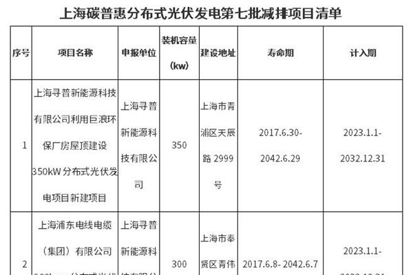 上海市生态环境局关于公布上海碳普惠分布式光伏发电第七批减排项目的通知 根据《上海市碳普惠管理办法(试行)》《上海市碳普惠减排项目和减排场景开发与申请指南(试行)》等有关文件,现将上海寻普新能源科技有限公司、上海浦东环保能源发展有限公司等分布式光伏发电减排项目予以公布。 附件:上海碳普惠分布式光伏发电第七批减排项目清单 上海市生态...