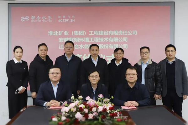 近日,联合水务与淮北矿业(集团)工程建设有限责任公司(以下简称“淮北矿建”)、安徽紫朔环境工程技术有限公司(以下简称“安徽紫朔环境公司”)举行战略合作签约仪式,共同开启水务领域合作发展新篇章。 签约仪式在江苏联合水务科技股份有限公司大会议室举行,联合水务董事兼执行总裁刘猛、联合水务江苏...