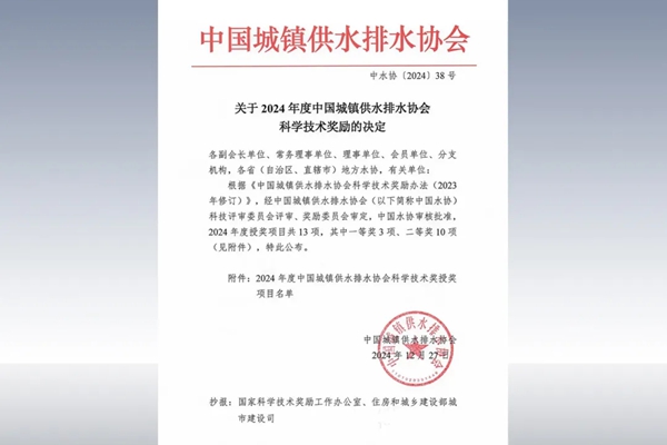 近日,中国城镇供水排水协会(简称“中国水协”)正式发布了2024年度中国水协科学技术奖励的决定,由中建环能科技股份有限公司牵头,中国科学院生态环境研究中心、嘉兴市联合污水处理有限责任公司等单位共同完成的“节碳型污水深度脱氮技术及模块化装备研发与应用”项目,荣获2024年度中国水协科学技术...
