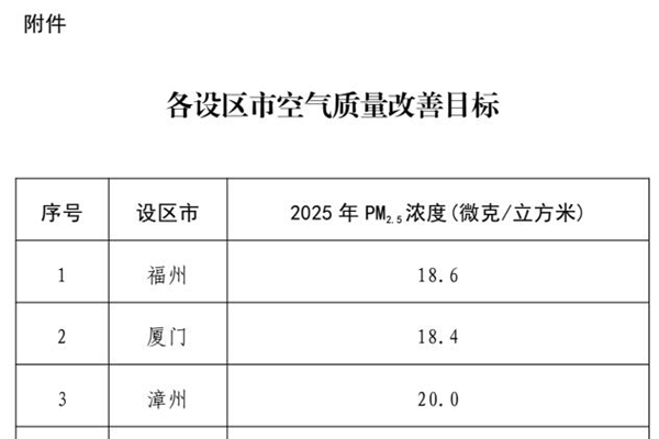 福建省人民政府关于印发《福建省空气质量持续改善实施方案》的通知 各市、县(区)人民政府,平潭综合实验区管委会,省人民政府各部门、各直属机构,各大企业,各高等院校: 现将《福建省空气质量持续改善实施方案》印发给你们,请认真组织实施。 福建省人民政府 2024年11月1日 (此件主动公开)福建省空气质量持续改善实施方案 为贯彻落实...