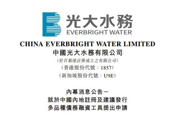 中国光大水务有限公司(简称:中国光大水务)发布公告,公司已于2024年11月6日向中国银行间市场交易商协会提交申请,以注册及于适当时候在中国内地向全国银行间债券市场机构投资者分多期发行金额为80亿元人民币的多品种债务融资工具(“建议发行”)。 资料显示,中国光大水务聚焦“泛水”领域,目...