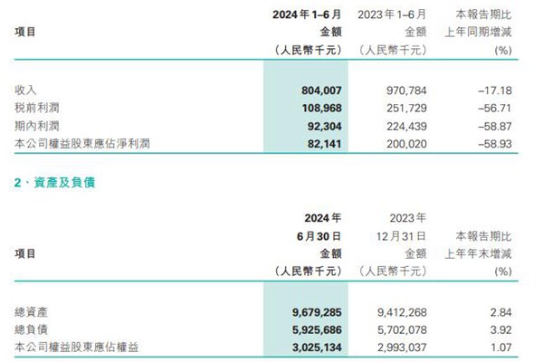 9月26日,港股上市公司中国海螺环保控股有限公司(简称:海螺环保)正式发布《二零二四年中期报告》。据该报告,2024年1-6月,海螺环保收入约8.04亿元,较上年同期减少17.18%;公司权益股东应占净利润为8214.1万元,同比减少58.93%。截至报告期末,资产总额为人民币约96.79亿元,较上年末增加人民币2.67亿元;每股基本...