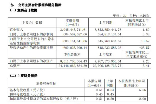8月23日,江西洪城环境股份有限公司发布《2024年半年度报告》。 报告期内实现营业收入 39.45 亿元,同比增长 1.89%;实现归属上市公司股东净利润 6.05 亿元,同比增长 3.38%;基本每股收益 0.51 元/股,扣除非经常损益后的加权平均净资产收益率 7.18%;截至 2024 年中期公司总资产为 241.46 亿元...