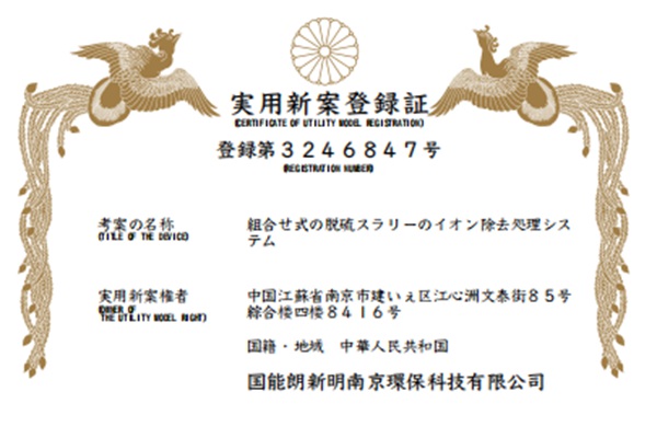近期,国能水务申报的实用新型专利“一种组合式脱硫浆液离子脱除处理系统及其改进方法”获日本授权,这是公司在废水零排放领域获得的首个国际专利,也是国家能源集团在废水零排放领域获得的首个国际专利。 本专利以“IRCT离子多级筛分精准脱除及废水浓缩减量关键技术”(IRCT技术)为内核,采用以国...