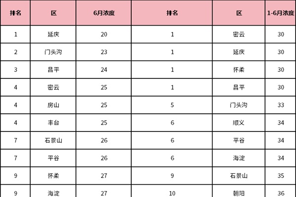 一、全市空气质量总体状况 6月份,北京市细颗粒物(PM2.5)、可吸入颗粒物(PM10)、二氧化氮(NO2)、二氧化硫(SO2)浓度分别为26、55、19和3微克/立方米。优良天数7天,优良天数比率23.3%,由沙尘天气导致的超标天数比率为6.7%;无重污染日。 1-6月,本市PM2.5、PM10、NO2、SO2浓度分别为34、6...