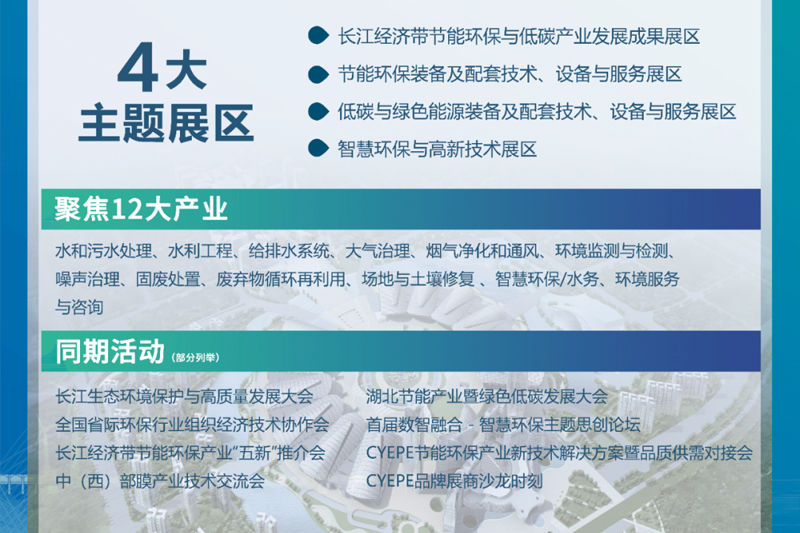 为充分发挥CYEPE长江环保展资源优势与平台作用,加快培育和发展新质生产力,深入推动落实湖北省人民政府鄂政发〔2023〕8号文件《关于进一步深化制造业重点产业链链长制实施方案》、湖北省制造强省建设领导小组〔2023〕4号文件《湖北省加快发展节能环保产业三年行动方案(2023-2025年)》和湖北省民政厅2024年《共建长江经济带&mi...