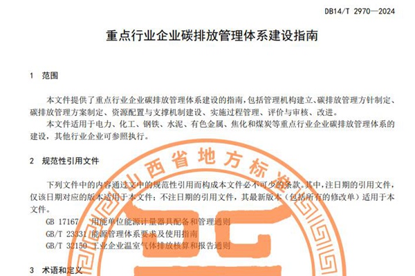 山西省市场监督管理局发布《重点行业企业碳排放管理体系建设指南》,适用于电力、化工、钢铁、水泥、有色金属、焦化和煤炭等重点行业企业碳排放管理体系的 建设。 指南要求,重点行业企业应建立由最高管理者参与的碳排放管理机构,该机构组成应包括最高管理者、相关部 门负责人和碳排放管理人员,并明确管理机构各层级的相关职责。企业应在识别自身所处的内...