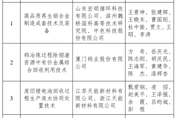12月17日,中国再生资源产业技术创新战略联盟会同昆明理工大学在云南省昆明市成功举办的“固废资源化绿色低碳先进技术创新大会暨2023年联盟年会”上,2023年度再生资源行业十佳绿色低碳技术成果发布。 “高品质再生铝合金制造成套技术及装备”、“钨冶炼过程除钼渣资源中有价金属综...
