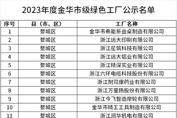 根据《关于印发2023年浙江省绿色制造工作要点的通知》(浙经信绿色〔2023〕76号)《关于印发金华市绿色工业园区、绿色工厂建设评价导则的通知》(金经信装备〔2021〕36号)等要求,经企业自愿申报、各地初审推荐、专家评审,金华市经济和信息化局将2023年度金华市级绿色工厂、园区名单予以公示。公示期:2023年11月8日—...