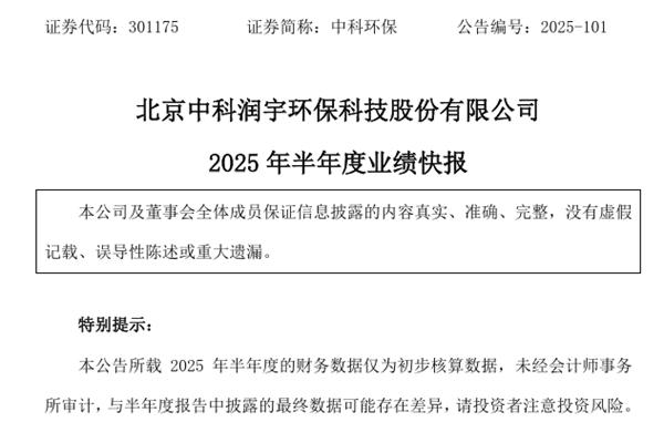 北京中科润宇环保科技股份有限公司(简称:中科环保)近日发布《2025年半年度业绩快报》。报告期内,中科环保实现营业收入为8.48亿元,同比增长4.48%;归母净利润1.96亿元,同比增长19.83%;基本每股收益0.13元。图源:中科环保公告 中科环保表示,2025 年上半年,公司积极拓展垃圾量及供热市场,固废处理量、供热量较上年同...