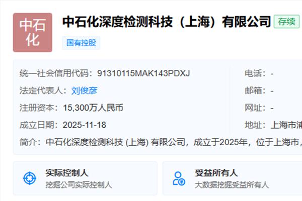 近日,中石化深度检测科技(上海)有限公司成立,法定代表人为刘俊彦,注册资本1.53亿人民币,经营范围:【一般项目】技术服务、技术开发、技术咨询、技术交流、技术转让、技术推广;新材料技术研发;实验分析仪器销售;软件销售。(除依法须经批准的项目外,凭营业执照依法自主开展经营活动)【许可项目】检验检测服务。(依法须经批准的项目,经相关部门批...