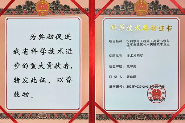2025年1月6日,湖北省科技创新大会在武汉洪山礼堂举行,会上宣读了《湖北省人民政府关于2024年度湖北省科学技术奖励的决定》。中建环能科技股份有限公司与长江水资源保护科学研究所等单位共同完成的科研成果“水利水电工程施工高效节水与废水资源化利用关键技术及应用”荣获湖北省技术发明奖二等奖。 该项目在国家自然科学...