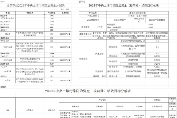 广西壮族自治区财政厅关于提前下达2025年中央土壤污染防治资金的通知桂财资环〔2024〕98号 有关市、县(区)财政局: 为深入贯彻《土壤污染防治行动计划》(国发〔2016〕31号),促进土壤环境质量改善,根据《财政部关于提前下达2025年土壤污染防治资金预算的通知》(财资环〔2024〕130号),现提前下达你市、县(区)2025年中...