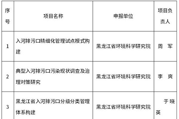 关于2024年度黑龙江省生态环境保护拟立项科研项目的公示 为充分发挥科技在深入打好污染防治攻坚战和建设绿色龙江中的支撑引领作用,构建新时期服务型生态环境科技创新体系,省生态环境厅开展了2024年度黑龙江省生态环境保护科研项目申报工作。按照工作安排,经项目申报、形式审查、专家评议等程序,确定了2024年度黑龙江省生态环境保护科研项目拟...