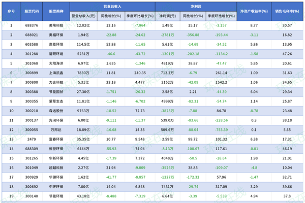 截至2024年10月25日,环保行业已经有26家公司披露了第三季度业绩报告。(仅供参考,如有疏漏,敬请谅解) 从这26家环保上市企业的三季度业绩来看,“普降”趋势没有根本变化,营收同比下降的公司占比约为57.69%,净利润同比下降的公司占比约为61.5%,营利双增的有6家,营利双降的有11家。 其中,营收涨...