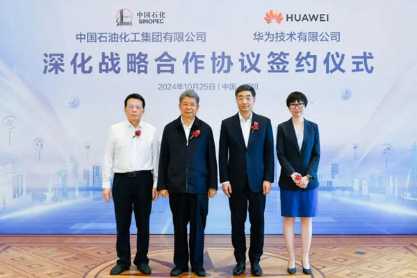 2024年10月25日,中国石油化工集团有限公司(以下简称“中国石化”)与华为签署深化战略合作协议。按照协议,双方将在人工智能、云计算、新能源、人才培养等领域持续深化合作。中国石化董事长、党组书记马永生,华为轮值董事长胡厚崑见证签约,并就双方合作进行会谈。中国石化总经理助理、发展计划部总经理戴照明和华为副总裁、...