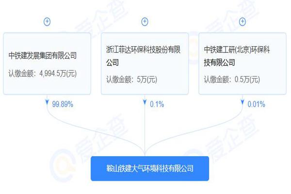 近日,鞍山铁建大气环境科技有限公司成立,法定代表人为王洪伟,注册资本5000万元,经营范围包含:大气环境污染防治服务;大气污染治理;水环境污染防治服务;合同能源管理等。 值得注意的是,根据股权穿透数据,该公司由中国铁建全资子公司中铁建发展集团有限公司、菲达环保、中铁建工研(北京)环保科技有限公司共同持股。图源:爱企查...