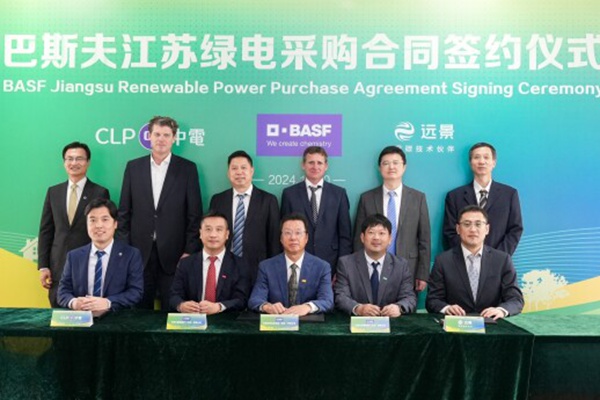 中电中国(中电)与巴斯夫、远景能源签署为期十年的可再生能源电力采购协议,支持巴斯夫位于江苏省南京、如东和镇江的三个生产基地100% 采用可再生能源电力,助力巴斯夫稳步迈向2050 年碳净零排放的企业目标,并为促进江苏能源绿色低碳转型作出贡献。中电与巴斯夫、远景能源签署为期十年的可再生能源电力采购协议,为巴斯夫位于江苏省的三个生产基地提...