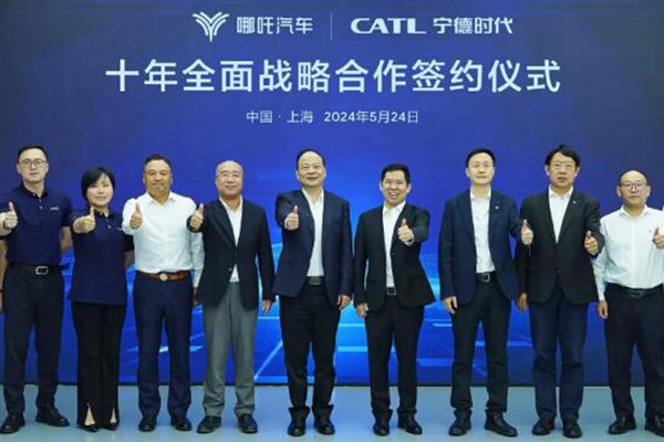 5月24日,哪咤汽车与宁德时代在上海签署十年全面战略合作协议。哪咤汽车创始人、董事长方运舟,宁德时代董事长兼CEO曾毓群出席并见证签约。哪咤汽车联合创始人、CEO张勇,宁德时代市场体系联席总裁韩伟代表双方签约。 根据协议,双方将在2025-2034年度展开全面战略合作,哪咤汽车将宁德时代作为汽车动力电池首选合作伙伴,宁德时代则为哪咤...