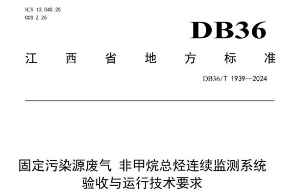 近日,江西省市场监督管理局批准发布了地方标准《固定污染源废气 非甲烷总烃连续监测系统验收与运行技术要求》(DB36/T 1939-2024)。该标准自9月1日起实施。 本文件规定了固定污染源废气非甲烷总烃连续监测系统的验收及运行要求等相关内容。本文件适用于采用氢火焰离子化检测器的固定污染源废气中非甲烷总烃连续监测系统的验收和运行管理...