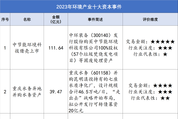 资本市场的动向一直是环境产业的风向标,在过去的面临重重挑战的2023年,环境产业有哪些资本事件值得大家关注?从资本视角怎样来解读环境产业正在经历的结构重整和演变趋势?我们对2023年环境企业IPO、再融资、重大资产重组的审核公开信息和上市环境企业公告等信息披露涉及的资本事项进行全面梳理,通过以下三个维度: √交易金额:交...
