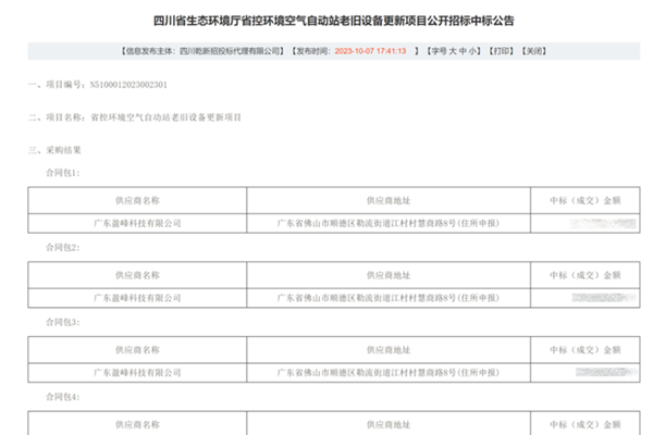 2023年10月,四川省生态环境厅发布了关于省控环境空气自动站老旧设备更新项目的中标公告。此次,盈峰环境脱颖而出,成功获得了该项目合同包1-4的中标资格,累计中标金额超过千万人民币。依据这次中标结果,盈峰环境将会承担起为四川省内20个地级市以及自治州中81个空气监测站点进行老旧设备更新的任务。 项目采购内容包括:各包核心产品PM10...