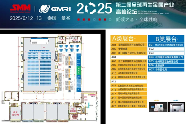 2025年6月12日-13日,由上海有色网主办、多家国内外头部再生金属企业共同发起的2025 SMM第二届全球再生金属产业链高峰论坛将在泰国·曼谷·素万那普机场凯悦酒店隆重召开! 现场展位图及展商已公布,快来看看今年都有哪些企业参展吧! 注:前往泰国不需要线下办理签证,线上填写电子入境卡并持有有效期内的...