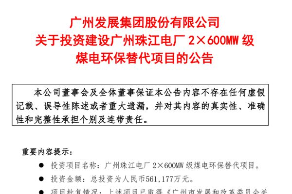 3月25日,广州发展集团股份有限公司(简称:广州发展)公告称,旗下全资子公司广州珠江电力有限公司计划投资56.12亿元建设广州珠江电厂2×600MW级煤电环保替代项目。该项目已获得广州市发展和改革委员会的核准批复。 广州发展表示,珠江电厂是公司电力产业的重要组成部分,采用等容量替代进行升级改造,可进一步巩固公司南沙电源基...