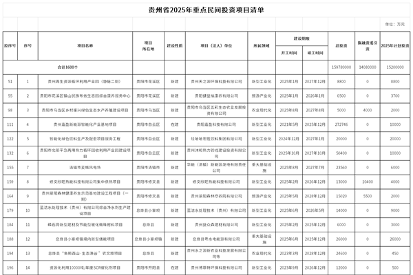 贵州发展改革委公布了《2025年重点民间投资项目清单》。 合计1600个项目,总投资约159780000万元,拟融资或者引资14080000万元,2025年计划投资15200000万元。 其中涉环保的包括贵州再生资源循环利用产业园(静脉二期)、清镇市麦格风电场、磷石膏新型建材及节能型玻化微珠材料项目、资源化利用10000吨/年废S...