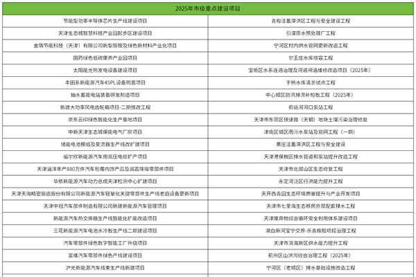 《天津市2025年重点建设、重点储备项目安排意见》发布,2025年安排市级重点建设项目854个,重点储备项目275个。 涉环保的包括国药绿色低碳康养产业园项目、京东云印绿色智能化生产基地项目、汽车零部件绿色数字智能工厂升级项目、青山绿能智能制造产研基地项目、废活性炭资源化循环再生利用项目、中材节能绿色制造基地、环境友好型生物降解新材...