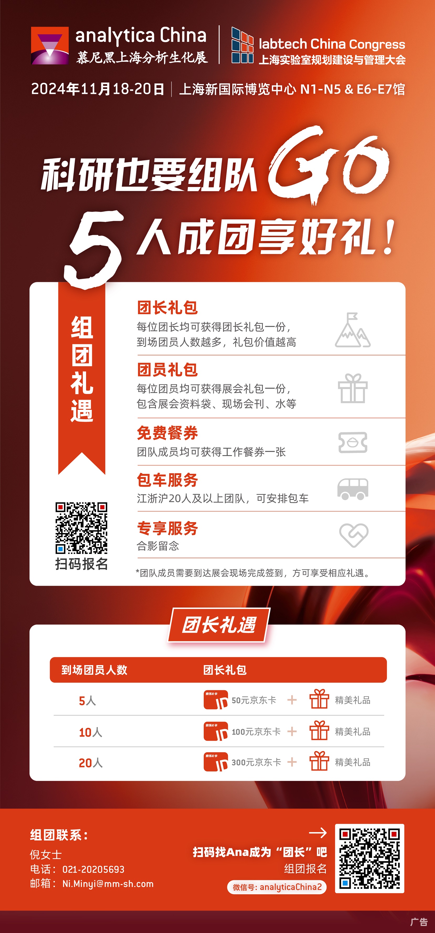 亚洲重要的分析、生化技术、诊断和实验室技术博览会——第十二届慕尼黑上海分析生化展(analytica China 2024)即将于2024年11月18-20日在上海新国际博览中心N1-N5 & E6-E7盛大举行。在此,主办方诚挚地邀请您及您的同事以及业内好友组团参观! 【组团条件】 参观者必须是实验室/分...