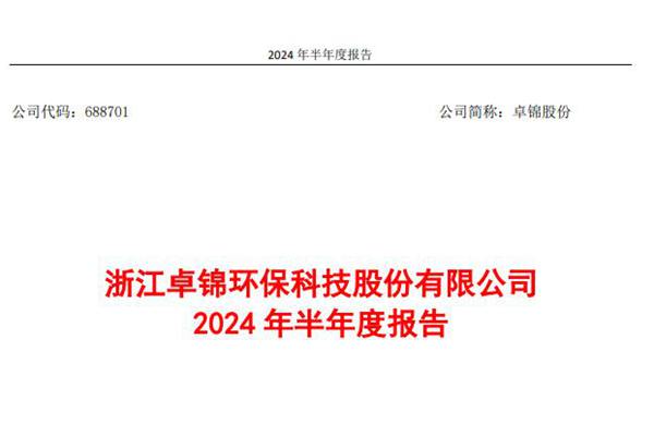 浙江卓锦环保科技股份有限公司(简称:卓锦股份)已发布《2024年半年度报告》,上半年实现营业收入1.18亿元,同比下降24.61%;归母净利润亏损2356.77万元,上年同期亏损3221.48万元;扣非净利润亏损2411.72万元,上年同期亏损3034.44万元;经营活动产生的现金流量净额为-702.2万元,上年同期为-8817.8万...