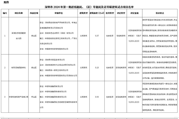 深圳市住房和建设局关于公布2024年第一批超低能耗、(近)零能耗及近零碳建筑试点项目的通知 前海管理局,各区(新区)住房建设局、深汕特别合作区住建水务局,各有关单位: 为落实国家、广东省及深圳市建筑绿色低碳政策相关工作部署,进一步提升建筑节能降碳水平,根据国家有关标准和我局关于开展超低能耗建筑工程有关试点要求,我局在有关单位自主申报的...