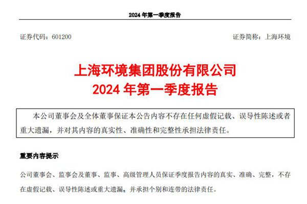 上海环境集团股份有限公司(简称:上海环境)近日公布《2024年第一季度报告》,报告期内实现营业收入13.15亿元,同比下降3.83%。归属于上市公司股东的净利润1.28亿元,同比下降6.92%。归属于上市公司股东的扣除非经常性损益的净利润1.27亿元,同比下降6.49%。 具体来看,上海环境2024年一季度实现总营收13.15亿元,...