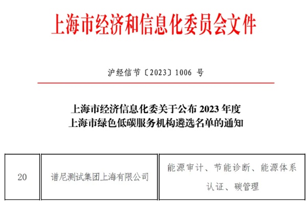 日前,上海市经济信息化委公布了2023年上海市绿色低碳服务机构遴选名单。谱尼测试集团上海有限公司凭借在绿色低碳领域丰富的项目经验、雄厚的团队实力以及完善的综合服务能力,成功再次入选上海市绿色低碳服务机构名单,服务范围涵盖能源审计、节能诊断、能源体系认证、碳管理等领域。 上海市经济信息化委自2022年起,每年开展绿色低碳服务机构的遴选...
