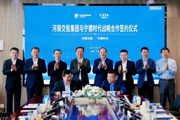 2024年3月18日, 河南交通投资集团(以下简称“河南交投”)有限公司与宁德时代新能源科技有限公司签署战略合作框架协议。河南交投党委书记、董事长付磊和宁德时代董事长、总经理曾毓群见证签约。河南交投副总经理马沉重,宁德时代区域总经理陈凌代表双方签约。 根据协议,双方将共建绿色交通能源补给生态,共同打造高速服务...