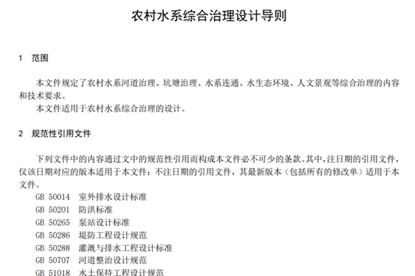 河南省地方标准《农村水系综合治理设计导则》(DB41/T 2601-2024)即将于2024年5月1日起启动施行(标准全文可查看附件),该文件由河南省水利厅提出,归口于河南省水利标准化技术委员会。 本文件规定了农村水系河道治理、坑塘治理、水系连通、水生态环境、人文景观等综合治理的内容和技术要求,适用于农村水系综合治理的设计。 文件...