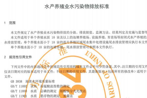 近日,安徽省发布《水产养殖业水污染物排放标准》。《标准》规定了水产养殖业水污染物排放的分级、排放限值、监测方法、结果判定及实施与监督等。适用于单个养殖水面10亩及以上的池塘养殖场、设施养殖、育苗场等封闭式水产养殖的尾水排放管理。单个养殖水面小于10亩的连片养殖区域尾水集中处理设施尾水排放管理应执行本文件。单个养殖水面小于10亩的池塘养...