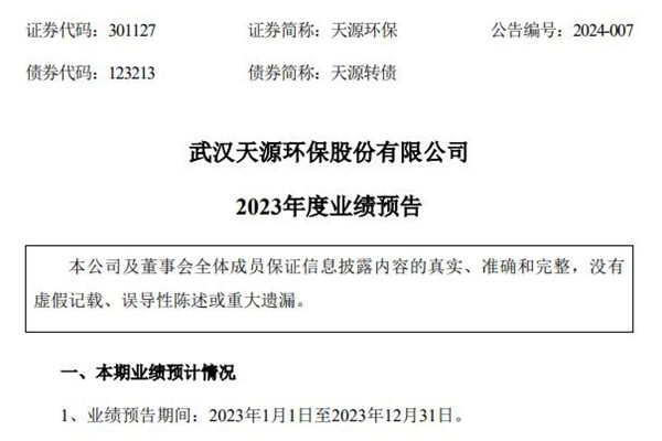 1月26日晚间,武汉天源环保股份有限公司(简称:天源环保)发布《2023年度业绩预告》,预计2023年归属于上市公司股东的净利润2.7亿元-3.2亿元,同比增长33.58%-58.31%;业绩变动主要原因是,报告期内,紧密围绕公司制定的经营计划,不断加大研发投入和自主创新的力度,积极拓展市场,深耕水环境治理、垃圾焚烧发电、固体废弃物综...