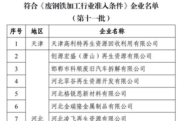 2024年1月17日,工信部发布2023年第43号公告,发布了一大批行业准入企业名单及撤销企业名单。本篇聚焦《废钢铁加工行业准入条件》企业名单。 第十一批符合《废钢铁加工行业准入条件》的企业共计135家,地区覆盖天津、河北、山西、内蒙古、辽宁、吉林、黑龙江、上海、江苏、浙江等23个省市,主要包括再生资源回利用、废旧汽车拆解等相关企业...