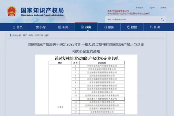 2023年12月6日,国家知识产权局发布《国家知识产权局关于确定2023年新一批及通过复核的国家知识产权示范企业和优势企业的通知》。北京建工环境修复股份有限公司(建工修复 300958)凭借领先行业的知识产权综合实力,顺利通过“国家知识产权优势企业”复核认定。这是对公司卓有成效开展知识产权保护和运用,积极构建知...