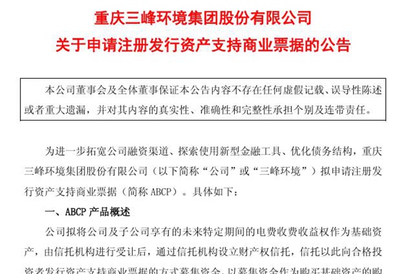 2025年07月03日,重庆三峰环境集团股份有限公司发布《关于申请注册发行资产支持商业票据的公告》。图源:三峰环境公告 公司拟将公司及子公司享有的未来特定期间的电费收费收益权作为基础资产,由信托机构进行受让后,通过信托机构设立财产权信托,信托以此向合格投资者发行资产支持商业票据的方式募集资金,以募集资金作为购买基础资产的购买价款,信...