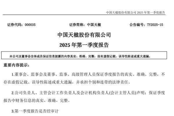 中国天楹股份有限公司(简称:中国天楹)近日发布《2025年第一季度报告》。报告期内,中国天楹实现营业收入为12.06亿元,同比下降3.64%;归母净利润为1.06亿元,同比下降47.63%;扣非归母净利润为9265.70万元,同比下降50.25%;基本每股收益0.04元。图源:中国天楹公告 据悉,基于对公司未来持续稳定发展的坚定信心...