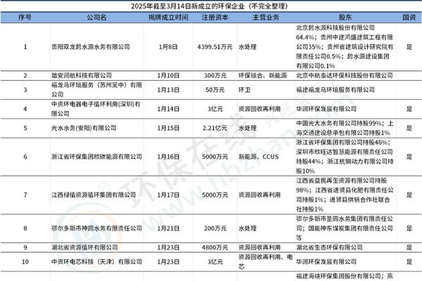 在“十四五”收官之年,环保行业又拿出了要“大干一场”的架势。2025年第一季度还未结束,华润、碧水源、光大、龙净、首创等接连成立多家新公司,央企、省环保集团及地方国资等也行动起来,积极展开布局。 据环保在线不完全统计,三个月不到的时间内,环保行业已至少新增了30家企业,同时还有多家上市...