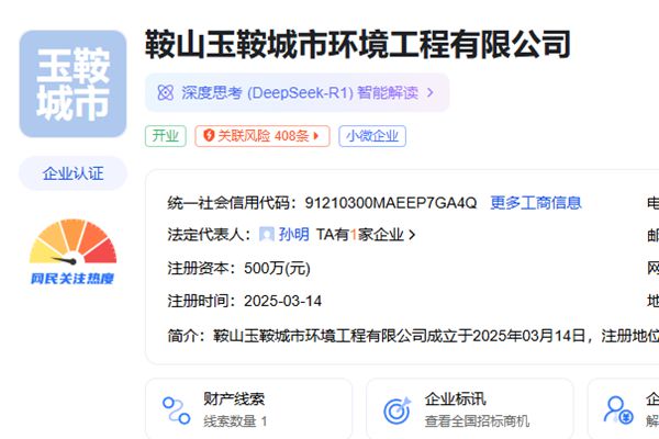 近日,鞍山玉鞍城市环境工程有限公司成立,法定代表人为孙明,注册资本500万元,所属行业为公共设施管理业,经营范围包含: 【许可项目】城市生活垃圾经营性服务;餐厨垃圾处理;城市建筑垃圾处置(清运)。(依法须经批准的项目,经相关部门批准后方可开展经营活动,具体经营项目以相关部门批准文件或许可证件为准) 【一般项目】城市绿化管理;环保咨...