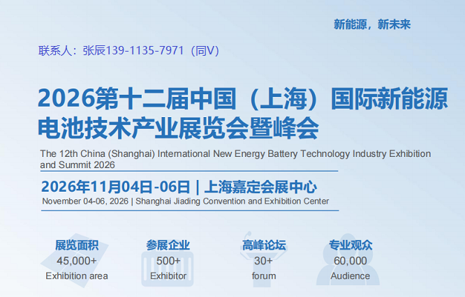 展会名称:2026第十二届中国(上海)国际新能源电池技术产业展览会 展会时间:2026年11月04-06日 论坛时间:2026年11月04-05日 展览地点:上海嘉定会展中心 展会规模:展览4.5万平米、展商500余家、观众6万 人次展会主题:新能源、新未来 承办单位:江恒博威(上海)会展有限公司 展会介绍 随着新能源的大力发展,电池作...